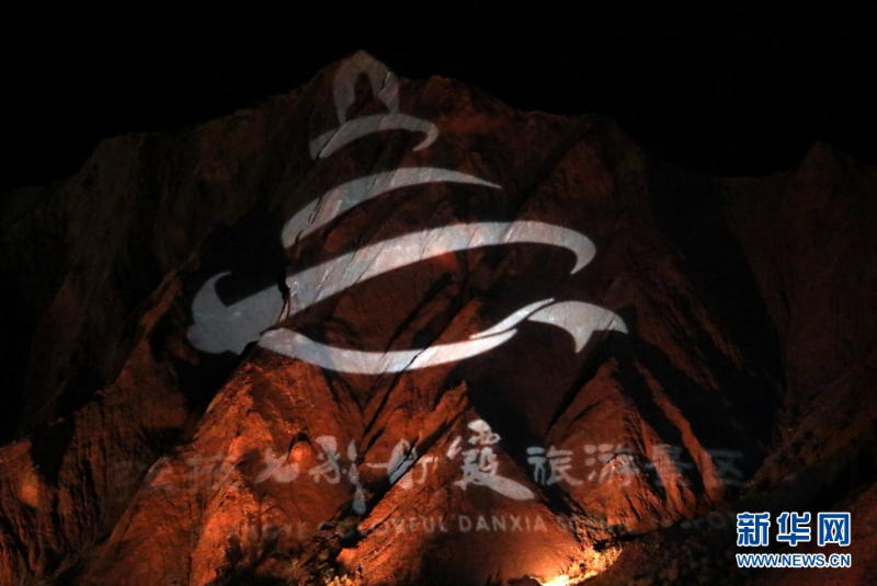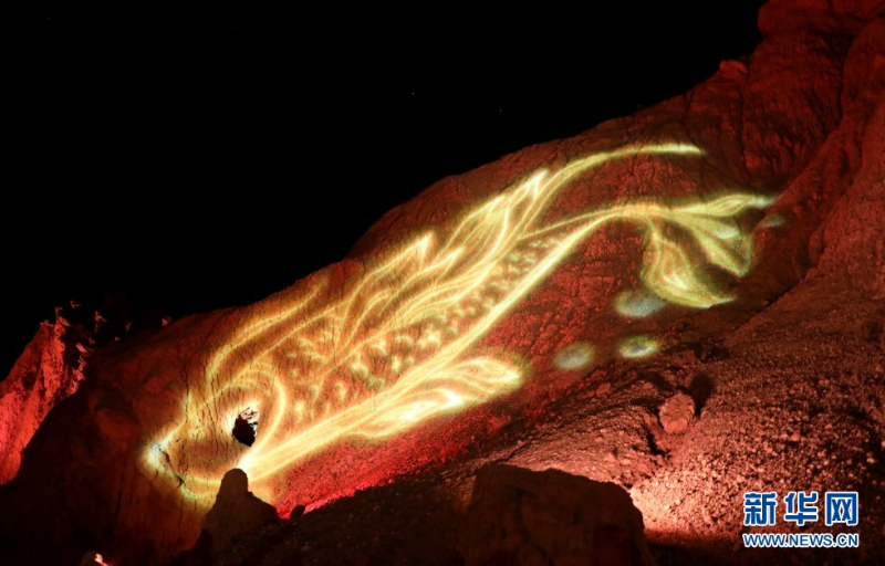 七彩丹霞与灯光秀融合,呈现了一场精彩纷呈的视觉盛宴。新华网发(王生元 摄)