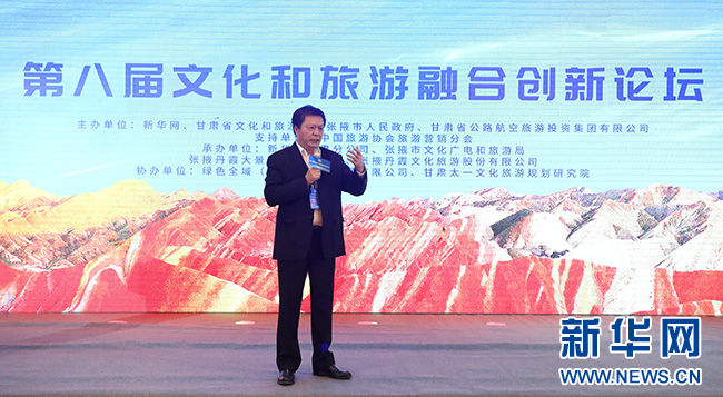 文化和旅游部“十四五”规划专家委员会委员、世界旅游城市联合会专家委员会副主任张辉做主题演讲。新华网甘肃频道 王生元摄