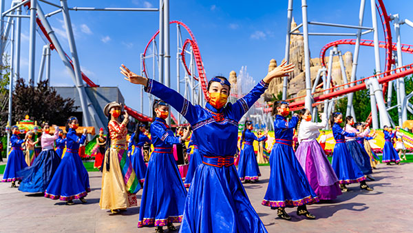 10月1日,北京欢乐谷街头艺术节启幕。艺术节以“欢乐,当燃在街头”为口号,集结了街舞、电音、戏法、快闪表演、欢庆歌舞等多种新国潮街头演艺,为游客奉上“艺彩纷呈”的文艺大餐。