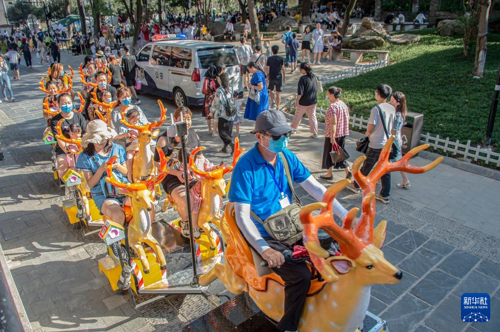 10月5日,游客在武汉昙华林景区乘坐游览车。 国庆长假期间,不少市民、游客前往武汉各个景点游玩,欢度假期。 新华社发(伍志尊 摄)pagebreak
