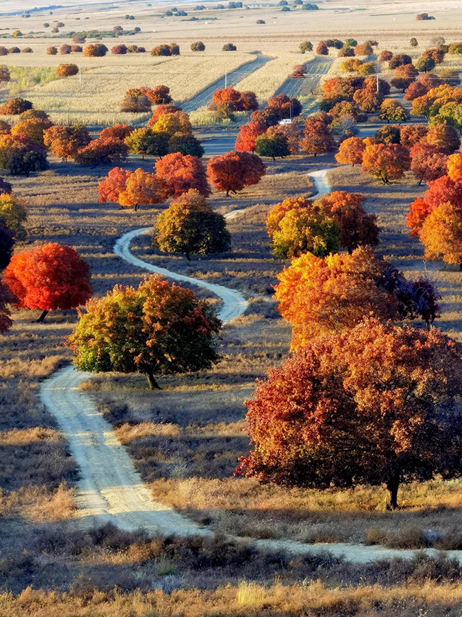 十月的科尔沁代钦塔拉草原上,“刀裁五角,天成万顷”的红枫似火,应邀前往蒙格罕山、巴彦套海嘎查等地采风创作的摄影家和摄影旅游网络达人们用相机、无人机定格了层林尽染的红艳枫林,“枫”情万种的内蒙秋韵,蒙古族牧民的幸福生活。