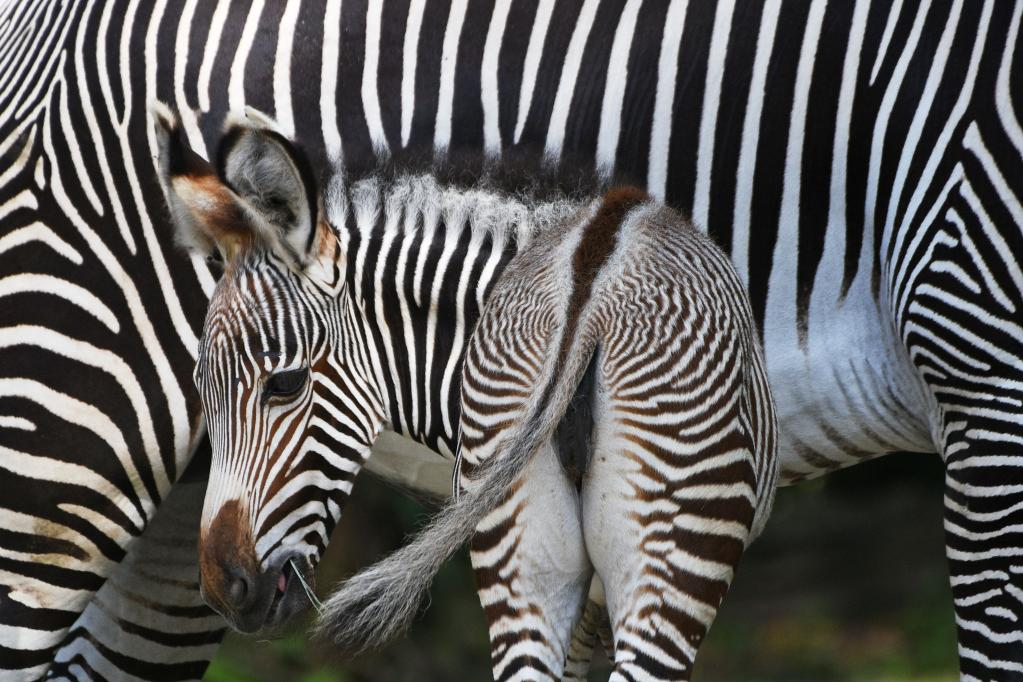 这是10月26日在新加坡动物园拍摄的新生细纹斑马与它的母亲。 这匹9月30日出生的细纹斑马当天在新加坡动物园首次亮相。 新华社发(邓智炜摄)