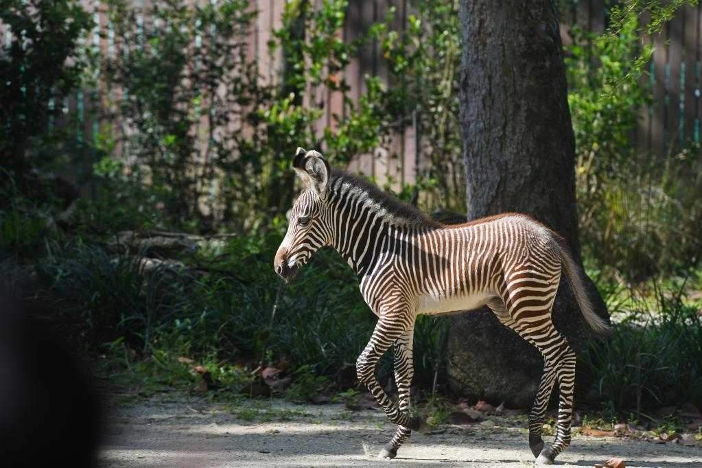 这是10月26日在新加坡动物园拍摄的新生细纹斑马。 这匹9月30日出生的细纹斑马当天在新加坡动物园首次亮相。 新华社发(邓智炜摄)pagebreak