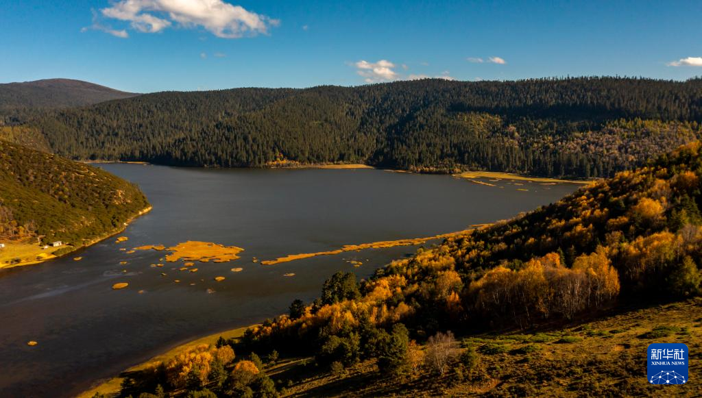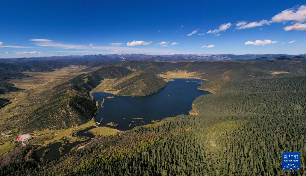 普达措景区秋色(无人机照片,10月25日摄)。 深秋时节,云南省迪庆藏族自治州普达措景区内层林尽染,景色宜人。 普达措景区位于滇西北“三江并流”世界自然遗产中心地带,拥有湖泊湿地、森林草甸、河谷溪流、珍稀动植物等丰富资源,是当地重要的生物多样性宝库和生态安全屏障。 新华社记者 江文耀 摄