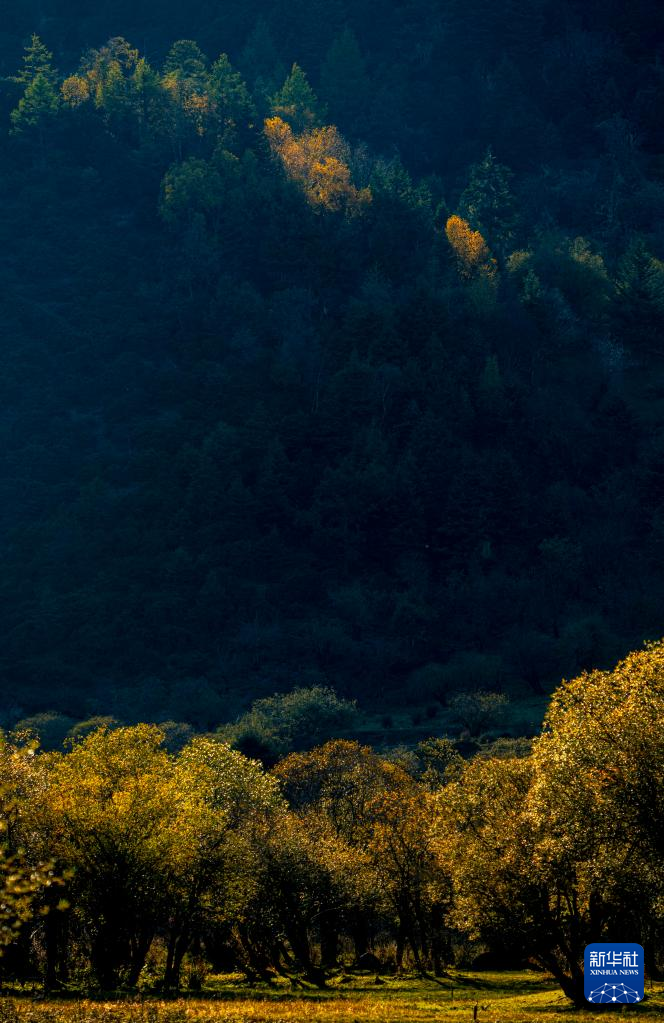 普达措景区秋色(10月25日摄)。 深秋时节,云南省迪庆藏族自治州普达措景区内层林尽染,景色宜人。 普达措景区位于滇西北“三江并流”世界自然遗产中心地带,拥有湖泊湿地、森林草甸、河谷溪流、珍稀动植物等丰富资源,是当地重要的生物多样性宝库和生态安全屏障。 新华社记者 江文耀 摄pagebreak
