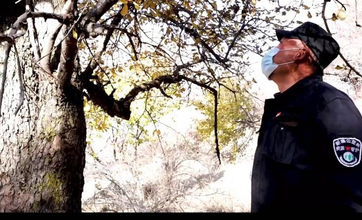 在新疆巩留县的东部山区——库尔德宁,60岁的护林员托海收拾好宣传册等物品,骑着摩托,带着徒弟前往山中林区,他们的工作是巡视是否有砍伐林木现象,排除火灾隐患。