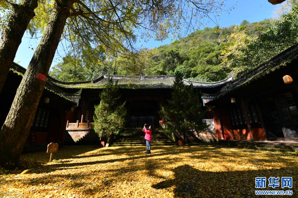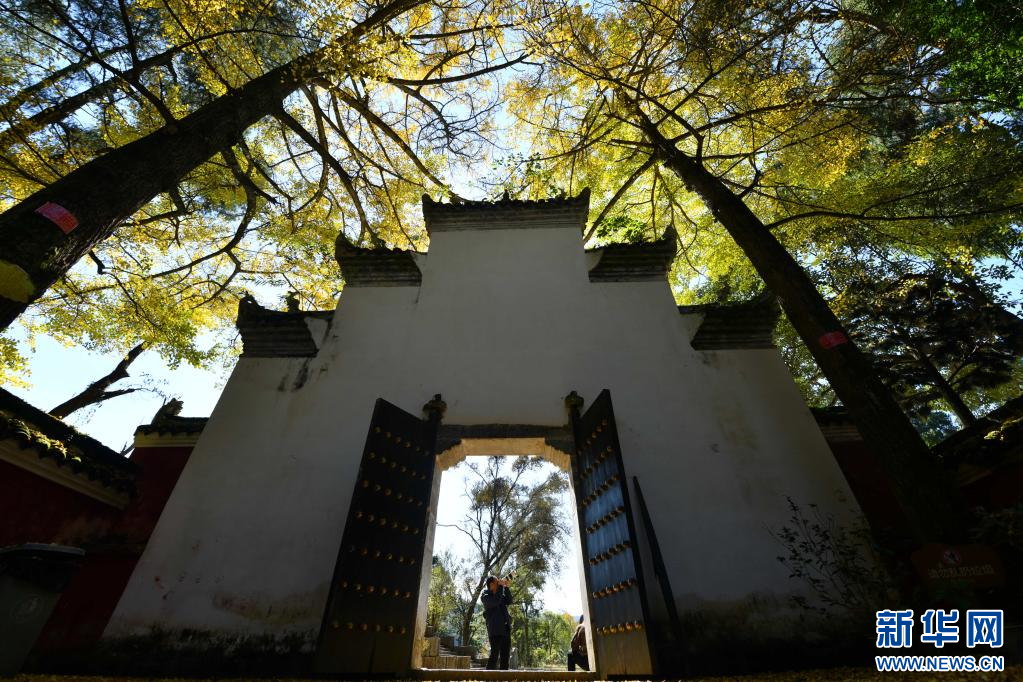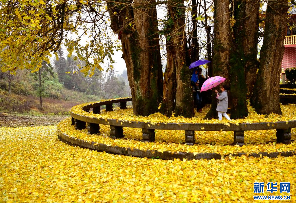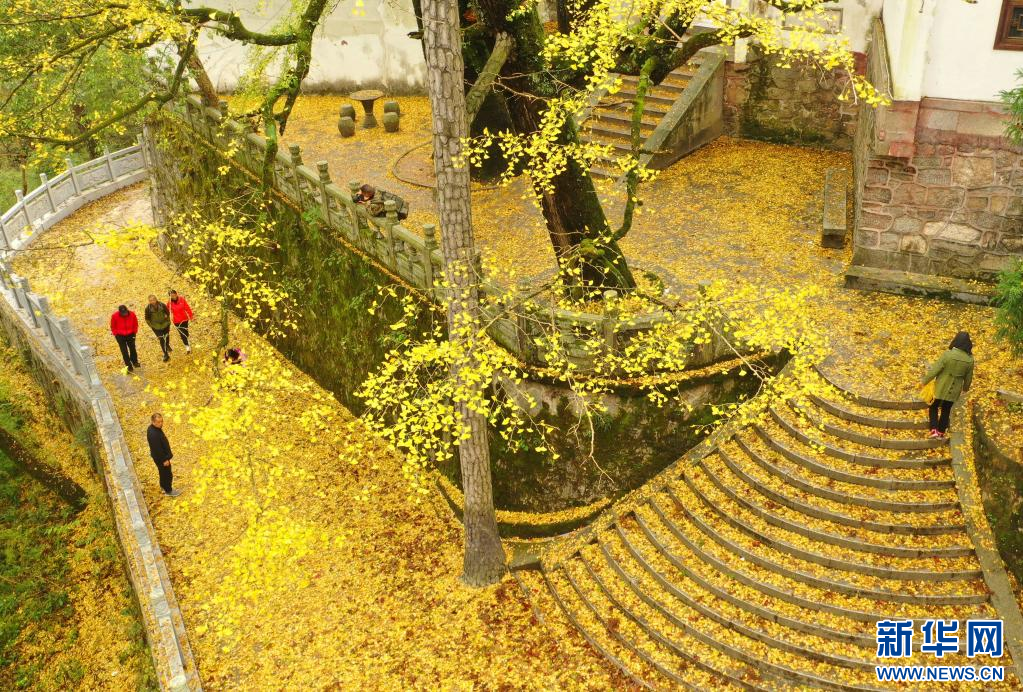 11月8日,在贵州省黔东南苗族侗族自治州黄平县飞云崖景区,游人拍摄银杏树。