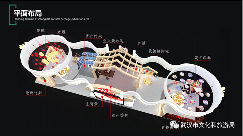 “非遗展区”里,将展现10项来自全国各地的非遗手艺,包括湖北的楚式漆器、青铜编钟、青砖茶,江苏的苏绣、宜兴紫砂陶、徐州香包,贵州的苗族蜡染,浙江的铜雕、东阳木雕,安徽的徽州竹雕等项目。