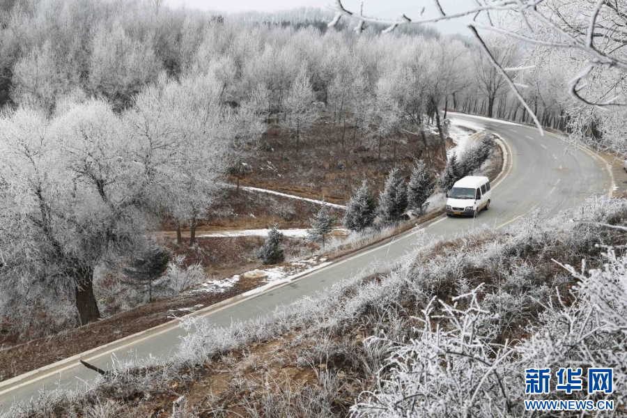 12月14日在甘肃省定西市安定区宁远镇拍摄的雾凇景观。