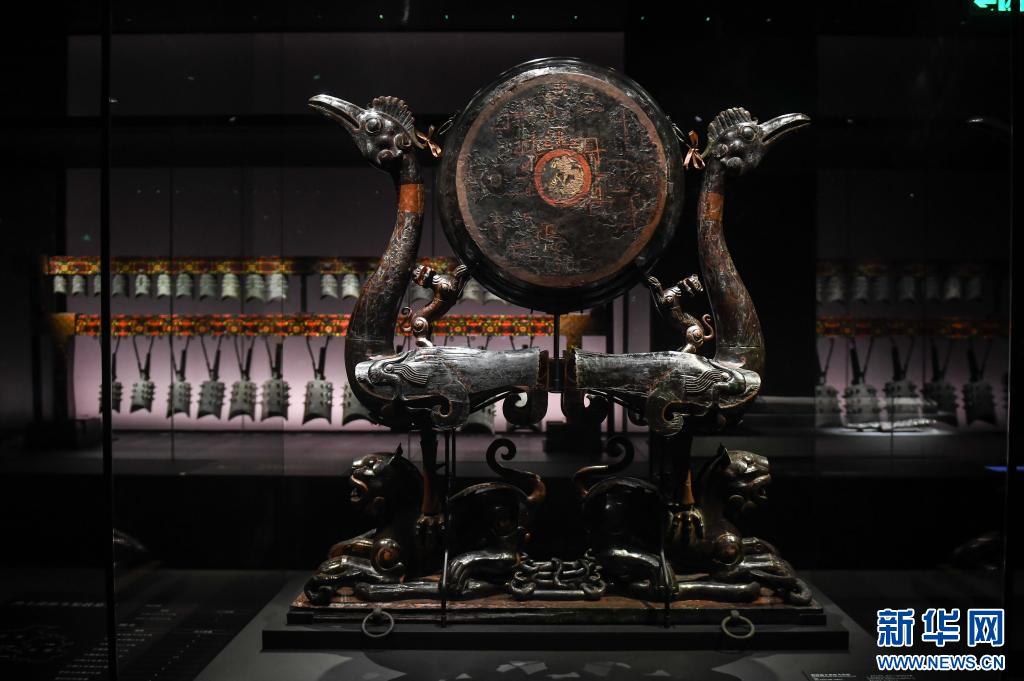 12月20日,“彩绘漆木虎座鸟架鼓”在新展厅亮相。