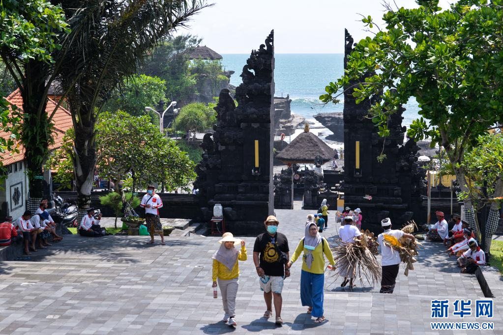 12月18日,在印度尼西亚巴厘岛,游客在海神庙景区参观。