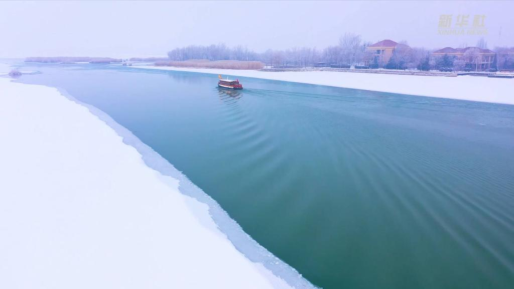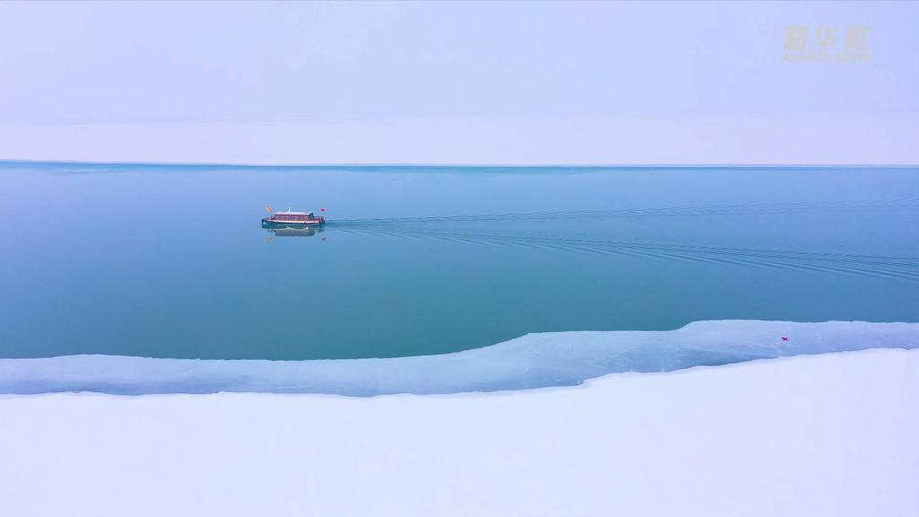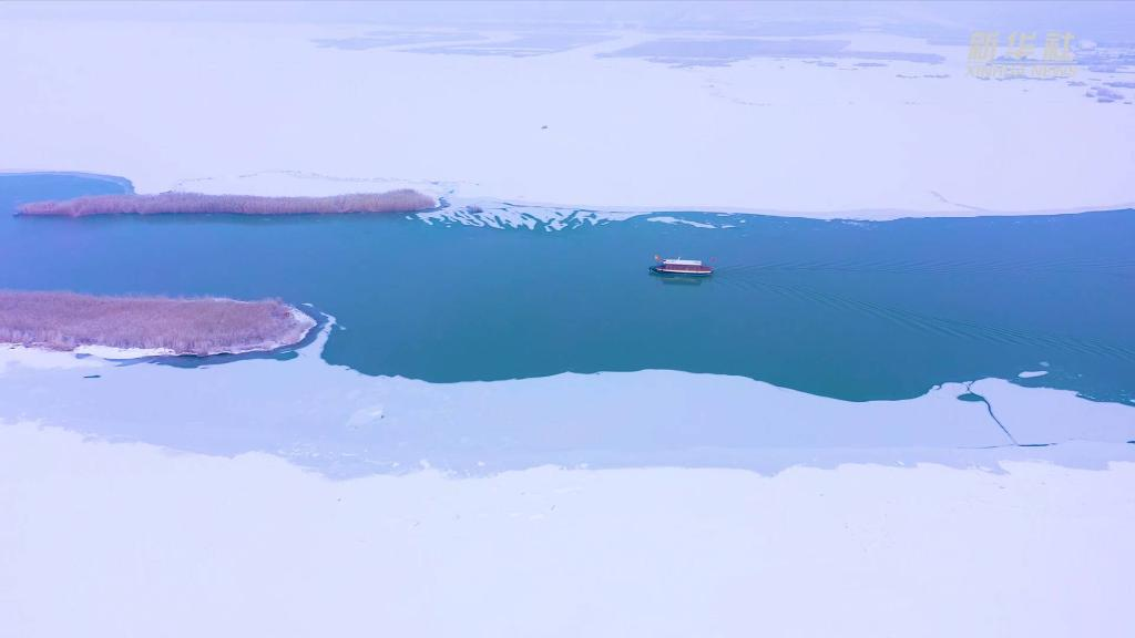 一场大雪之后,位于宁夏石嘴山市平罗县的沙湖银装素裹,宛如仙境。连绵起伏的沙漠被皑皑白雪覆盖,湖水湛蓝静美如画。大自然匠心独具,在沙湖描画出独特风景。