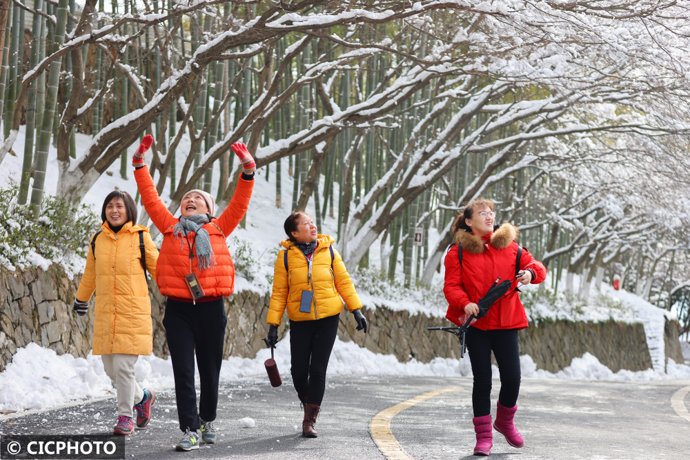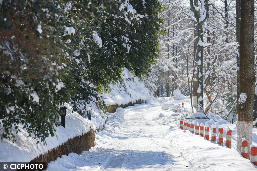 2022年2月20至21日,雪后初晴的浙江省湖州市德清县莫干山格外美丽,冰雪在阳光的照射下分外耀眼。不少游客徒步上山,赏雪景、打雪仗,享受冰雪乐趣。