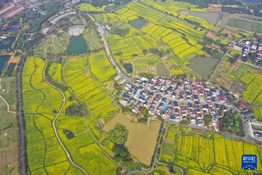 近日,江苏省南京市高淳区桠溪国际慢城的万亩油菜花进入盛花期。金色的花海与民居、茶园相映成趣,构成美丽的春日画卷。