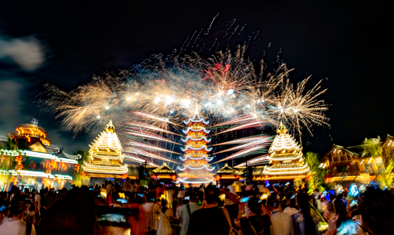 假日期间,游客们将在方特体验各种具有浓郁地方特色的民俗踏青活动:南宁方特深度融合壮乡街圩文化和东南亚文化,全新打造“花船山歌节”、“花朝街圩”、壮乡风情长廊、花朝姻缘大会等极具壮乡风韵的文化主题活动;在赣州方特,游客们在体验红色文化主题项目的同时,还能参与投壶、蹴鞠、DIY风车等传统民俗活动。