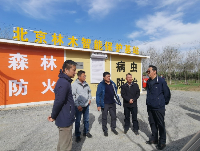4月14日,市园林绿化局一级巡视员蔡宝军、防治检疫处处长朱绍文、绿化资源保护中心主任黄三祥、副主任潘彦平、综合防治科科长赵佳丽、《绿化与生活》主编黄建华一行到通州区调研林保智能基站监测系统,杨世龙调研员、林业保护站负责人王爱东等同志陪同调研。