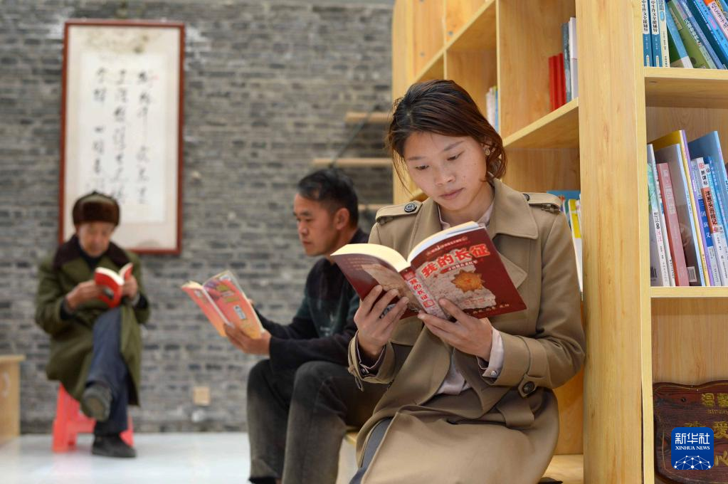4月19日,人们在桐梓县九坝镇山堡社区红色书吧阅读。