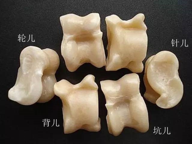 把膝盖骨从后腿处卸下来,蒸煮刮净之后,上色 (通常为大红),或是保持原色。嘎拉哈四个凑成一副,每个骨头有六个面,其中比较大的四个面分别叫做针儿、轮儿、坑儿、背儿。聪颖机智的先祖就把这小小兽骨四个面玩了个新鲜逗趣。