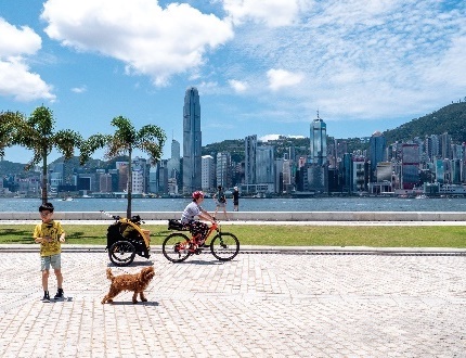 如果将视线聚焦至香港的新艺文地标——西九文化区,就可发现这里有着大片绿地。郁郁葱葱的植物环绕着一幢幢极具艺术气质的建筑物,与四周钢筋水泥的现代化建筑群形成了鲜明的对比。作为城市中的天然氧吧,这里也是人们走出户外、呼吸新鲜空气、欣赏海景的好去处。