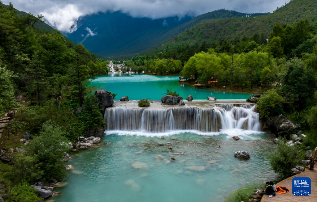 6月26日,游客在位于玉龙雪山脚下的蓝月谷游览。