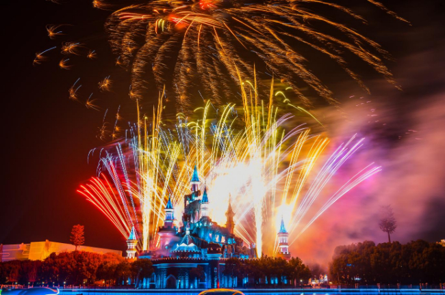 方特梦幻王国以摩登DISCO为主题,带领游客领略上世纪90年代的音乐风情。在“复古潮流大集”上,游客变身复古弄潮儿,尝童年记忆零食、玩怀旧游戏机、唱复古卡拉OK;在动感的“摩登花车巡游”和“90年代DISCO舞台秀”上,游客跟随灯光音乐起舞;当时钟指向21时,一簇簇烟花在城堡上空中绽放,为游客们献上一场绚丽多彩的视觉盛宴。