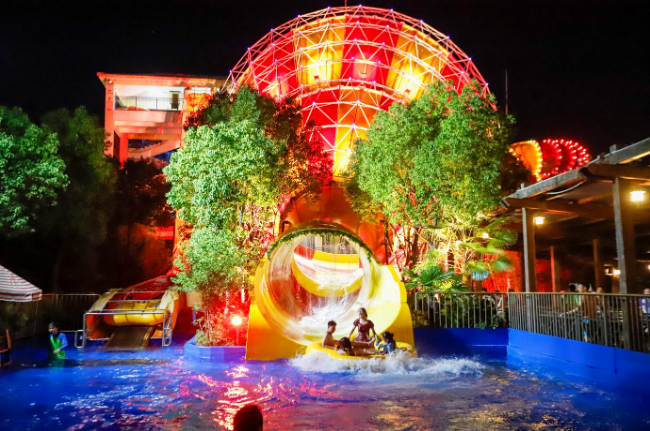 畅享夏日时光,游方特水陆双园。即日起至8月31日,芜湖方特开启“夜方特·水陆同欢”双园游玩模式,游客仅需花费220元购买“水陆同欢”套票,即可在下午16时至晚上22时无限穿梭方特水上乐园和方特梦幻王国,畅享两大主题夜场,嗨玩40余款缤纷项目,体验精彩纷呈的夏日盛宴。