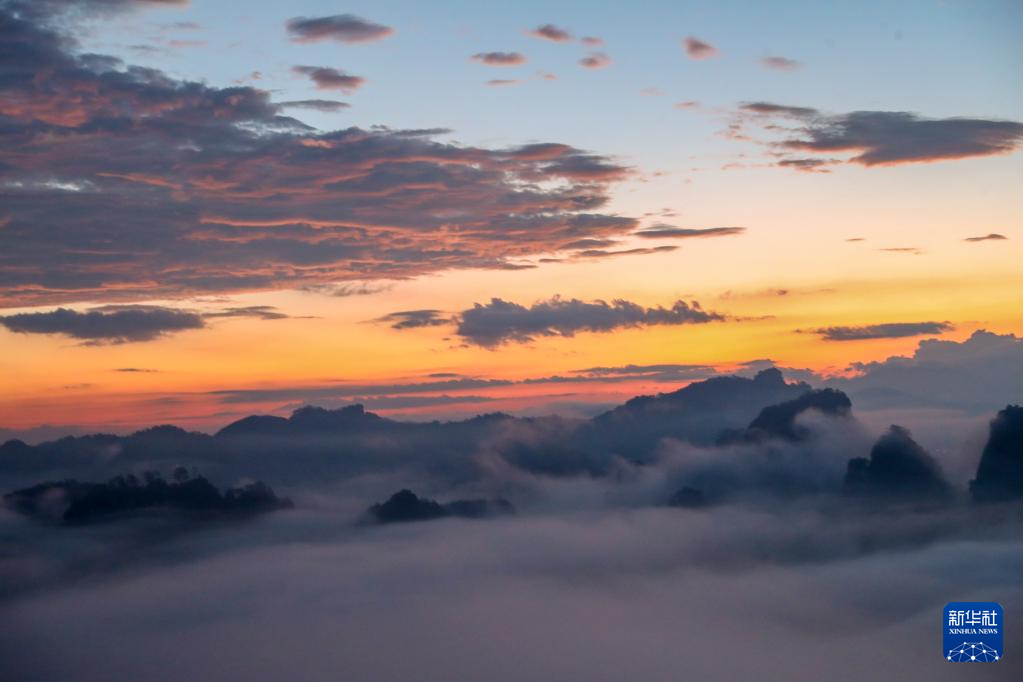 7月8日,福建省武夷山国家公园日出后云海腾涌,美不胜收。