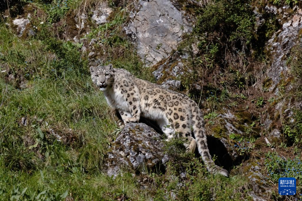 这是在昂赛大峡谷内拍摄的雪豹(8月6日摄)。