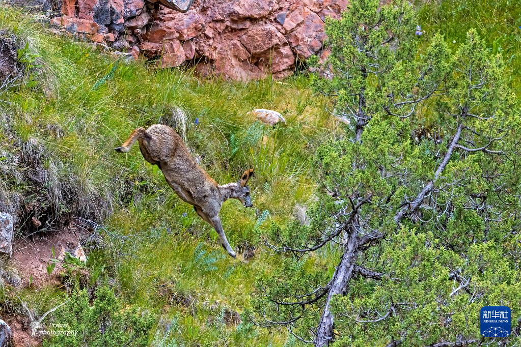 这是在昂赛大峡谷内拍摄的马麝(8月6日摄)。