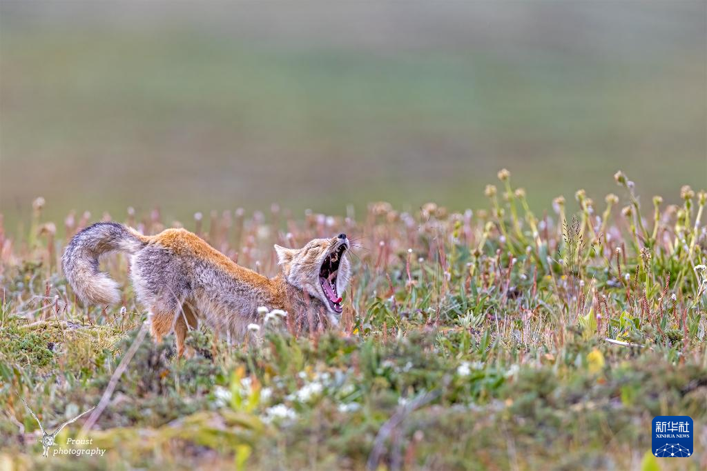 这是在昂赛大峡谷内拍摄的藏狐(8月6日摄)。