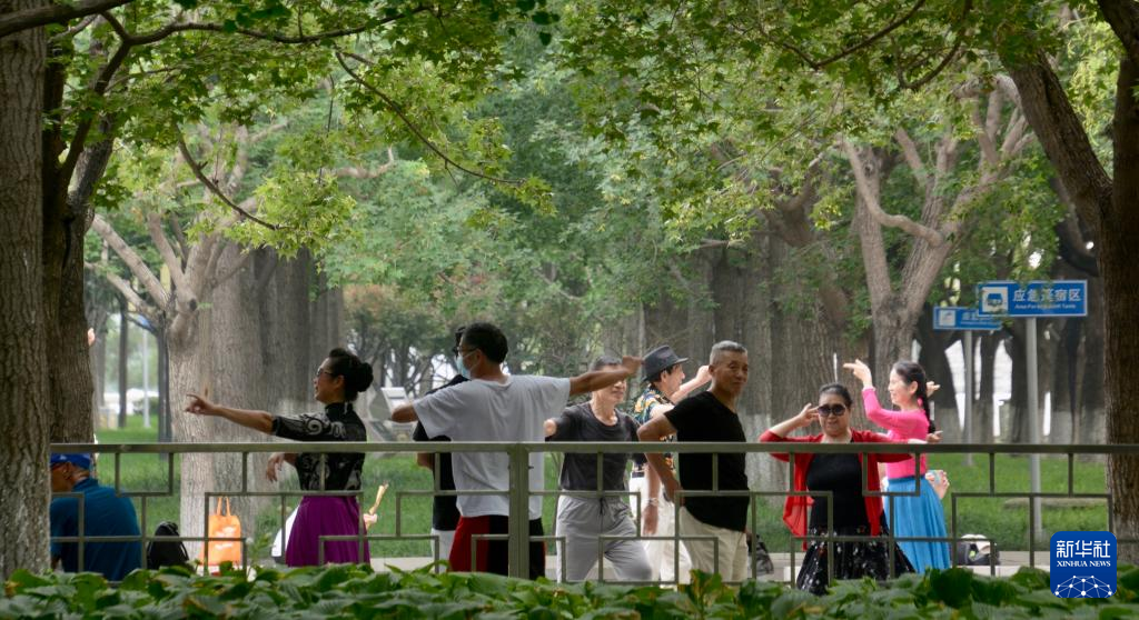 8月13日,市民在南中轴线御道景观区内的公园中休闲。