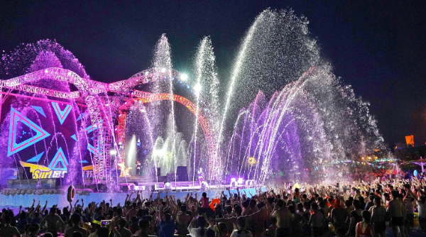 此外,方特水上乐园重磅打造的水上电音之夜,每晚19:30,伴随着动感的电音和潮酷的舞台水秀、梦幻泡沫派对等主题演艺,带给游客别样的夏夜狂欢。