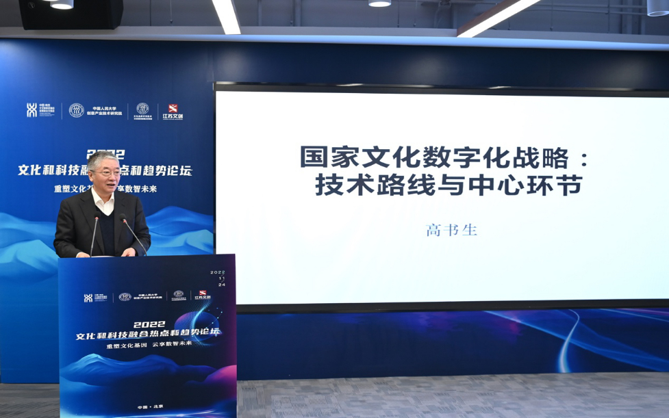 中宣部文改办原副主任、一级巡视员高书生以“国家文化数字化战略:技术路线与中心环节”为题,系统分析了党的二十大报告中关于“繁荣发展文化事业和文化产业”的内容,重点解读了2022年3月中办国办印发的《关于推进实施国家文化数字化战略的意见》,介绍了文化数字化的中心环节及核心元素。