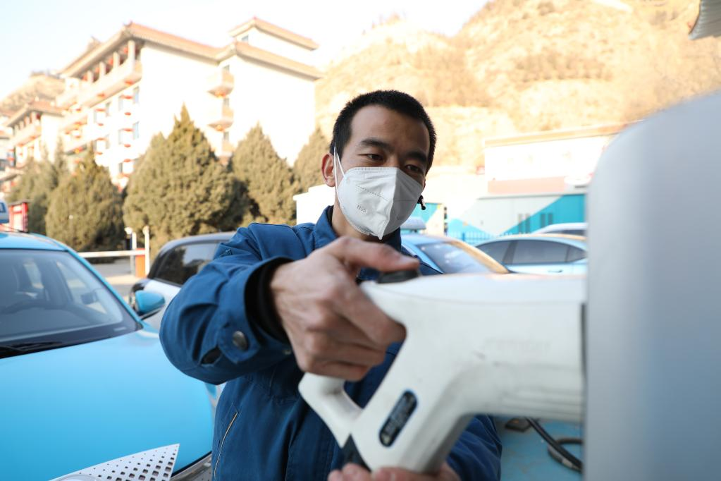 樊伟正在给他的出租车充电。新华社记者 张睿 摄