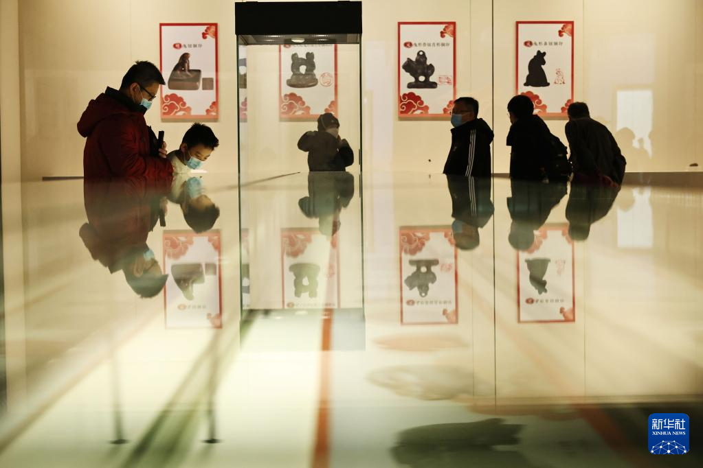 1月24日,游客在天津博物馆观看“大展宏‘兔’——天津博物馆癸卯生肖文物展”。