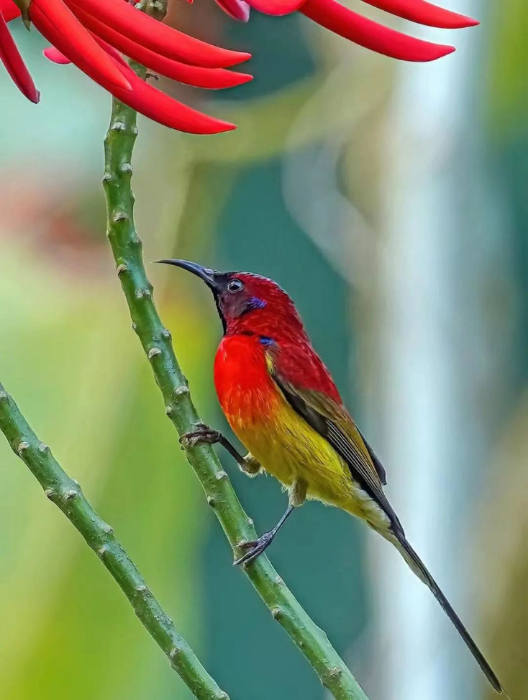 蓝喉太阳鸟,羽色艳丽,是很好的观赏鸟。
