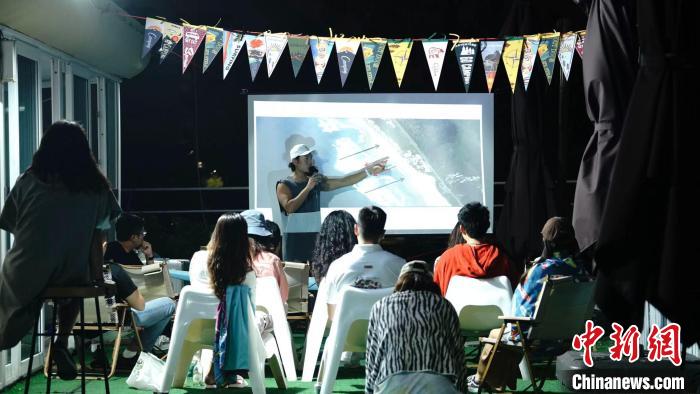 近日,冯昌在冲浪俱乐部向学员科普冲浪知识。(受访者供图)
