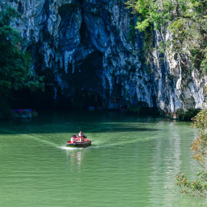 11月14日,游客在贵州省安顺市黄果树旅游区龙宫景区乘船观光。新华社记者 杨文斌 摄