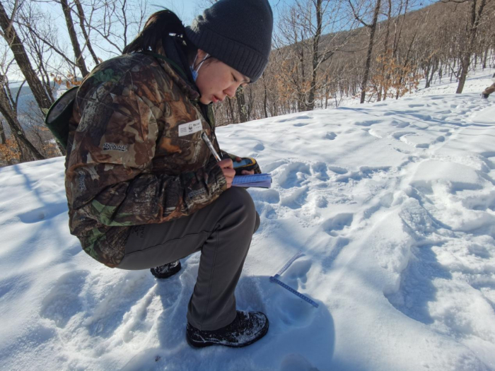 徐春梅是黑龙江东宁人,怀揣着对山水林木的热爱,为了实现保护东北虎豹的梦想,2019年徐春梅加入东北虎豹国家公园东宁局女子巡护队。5年的风风雨雨,5年的默默坚守,她用一步一个脚印丈量着虎豹栖息地的长度和宽度。
