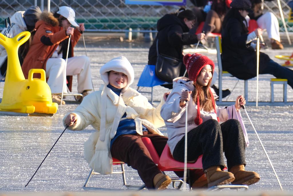 以上图片:2026年1月12日,在北京什刹海前海冰场,人们在体验冰上运动。CICPHOTO/郭俊锋摄