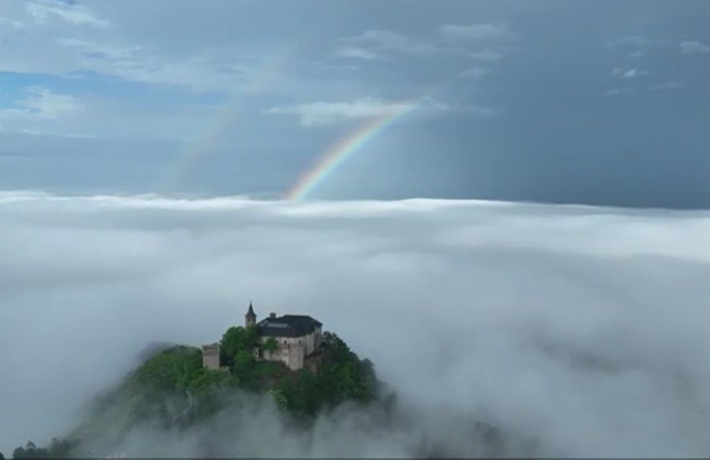 2022年5月29日,雨过天晴,浙江省湖州市德清县莫干山出现壮观的云海景观,山间云雾缭绕,绚丽的彩虹斜挂天边,与云海交相辉映,宛如仙境,美不胜收。