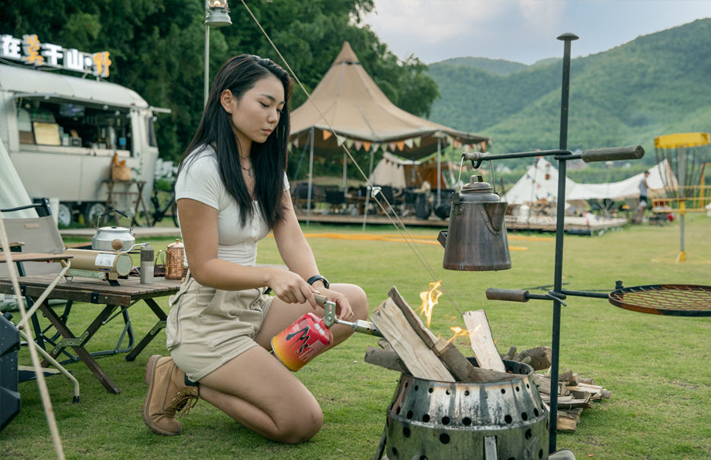 CICPHOTO高明 摄2022年7月15日,在浙江省湖州市德清县的莫干山露营地,旅者用铁锅煎牛排。