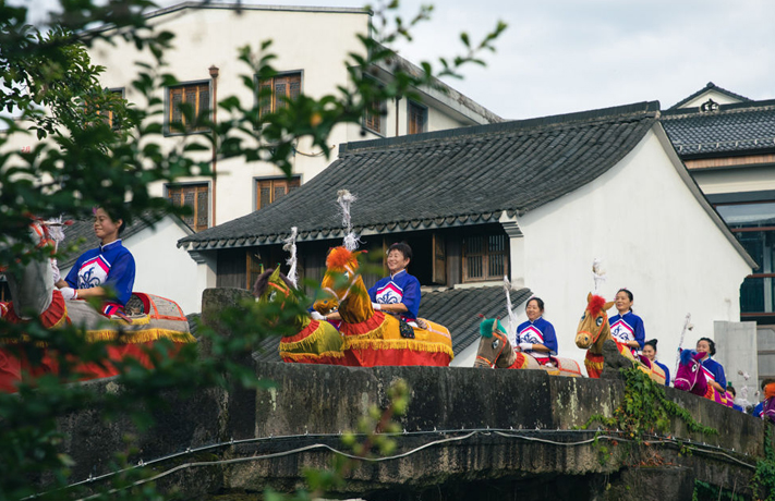 CICPHOTO高明 摄2022年7月14日,在浙江省湖州市德清县,舞阳街道上柏村马灯队进行马灯舞表演。