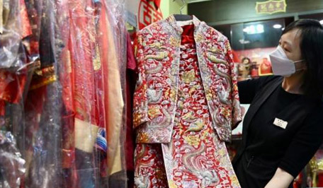 桃之夭夭,灼灼其华,一袭裙褂,一段芳华。位于香港弥敦道的百年裙褂老字号冠南华内,挂满各种样式的嫁衣。