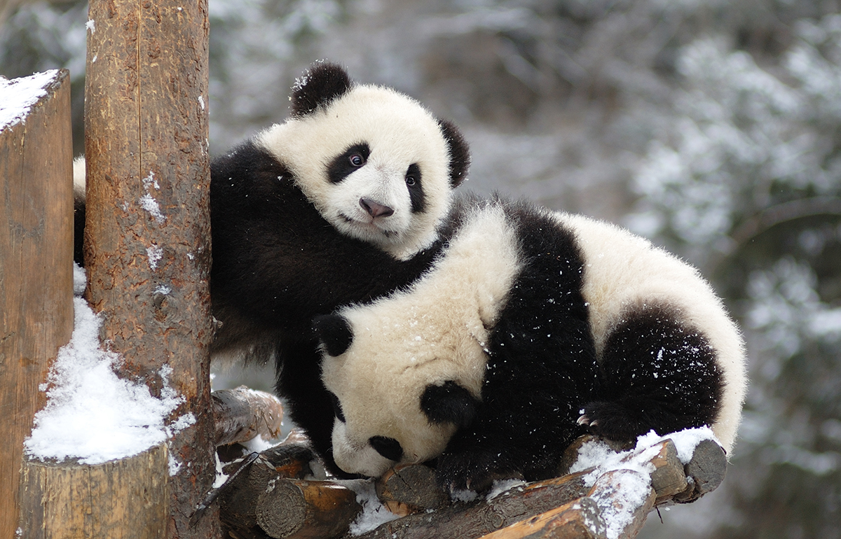 秦岭是“国宝”大熊猫的分布地之一,生活着大熊猫的另一亚种——秦岭亚种。与四川亚种相比,秦岭大熊猫头小、牙齿大,头型像猫科动物如猫、老虎等,胸部及腹部毛色多为深棕色。