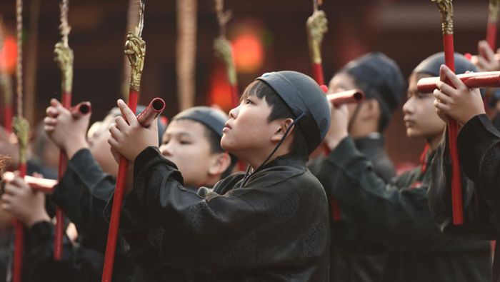 伴随着高亢明快的锣鼓声,刚劲威武的布阵架势摆开,一支支表演队轮番贡献精彩表演……民俗盛典“2026高雄内门宋江阵”21日在高雄内门紫竹寺拉开序幕,吸引数百人到场观看。