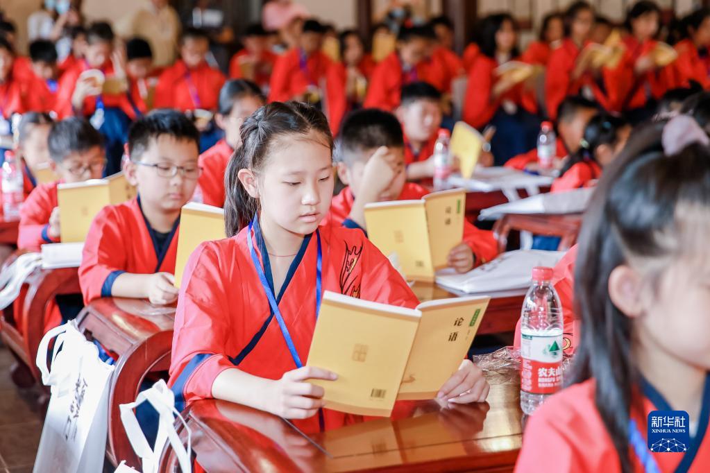 9月25日,沪台学子共同朗诵《论语》。新华社发