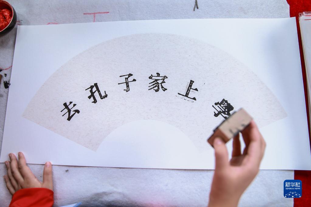 9月25日,沪台学子在活动上体验拓印。新华社发