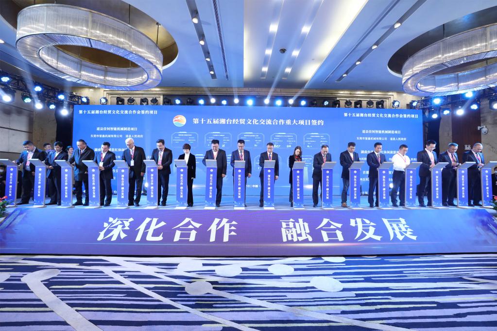 图为第十五届湘台经贸文化交流合作会项目签约现场。(湖南省台办供图)