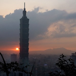 夕阳映照下的台北101大楼。新华社记者 陶明 摄
